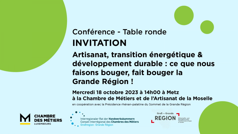 INVITATION : Artisanat, transition énergétique & développement durable : ce que nous faisons bouger, fait bouger la Grande Région !