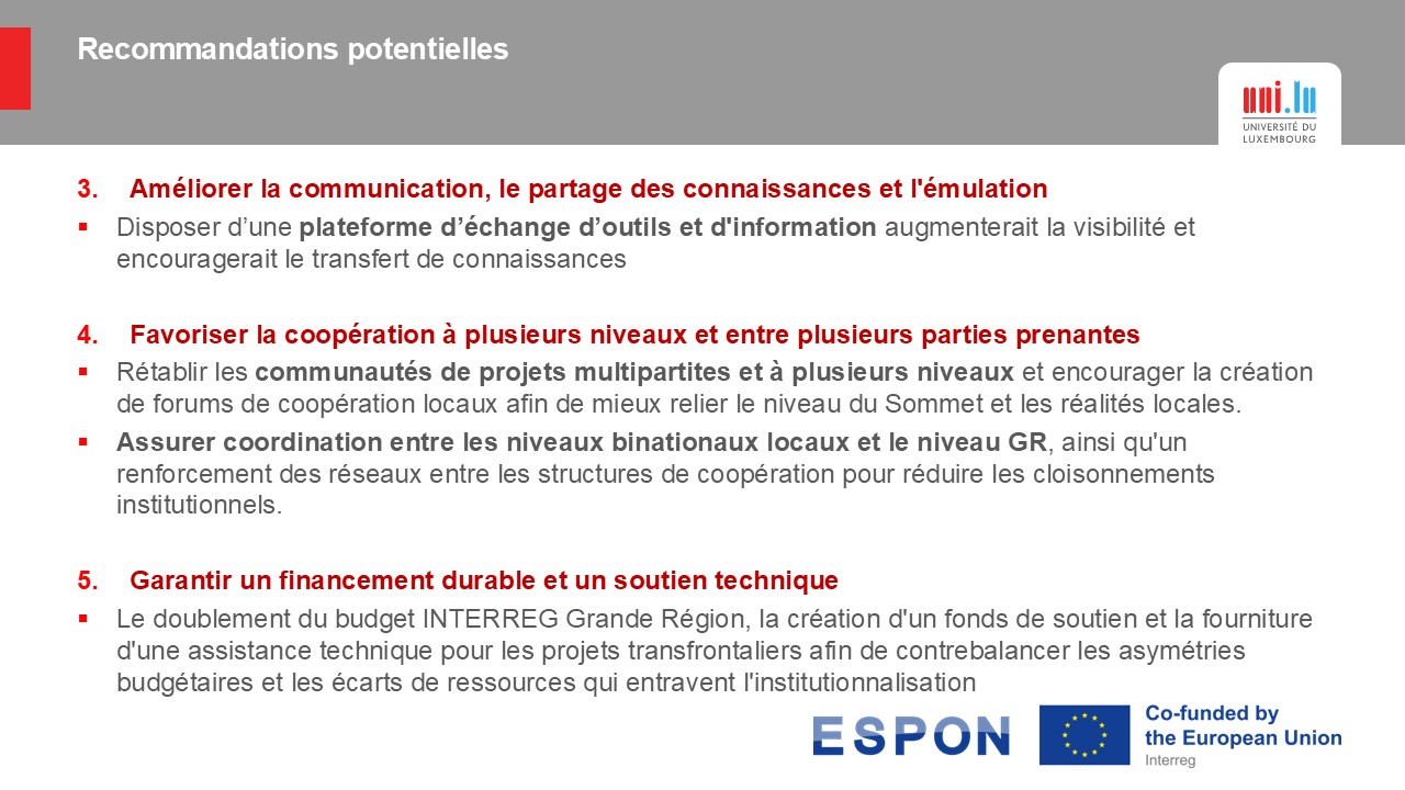 La discussion a été précédée par une présentation de Dr. Estelle Evrard (Université du Luxembourg), qui a exposé les conclusions du projet CROSS-GOV sur la gouvernance au niveau des zones transfrontalières.