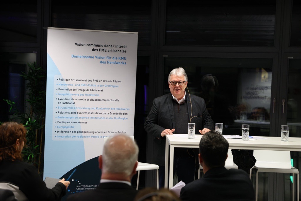 M. Philippe Fischer, Président du CICM, a ensuite introduit le débat en soulignant le poids économique de l’Artisanat dans la Grande Région – « 290.000 entreprises, 820.000 salariés et 32.000 apprentis » – et en appelant à la mise en place d’un cadre interrégional pour la formation initiale et continue, incluant la promotion de l’apprentissage transfrontalier. Il a insisté sur la nécessité d’une vision à long terme et d’une gouvernance intégrée pour transformer les ambitions en actions concrètes.