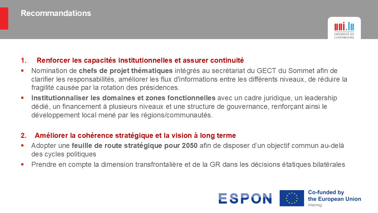 La gouvernance doit s’appuyer sur des priorités pluriannuelles, dépasser les cycles biennaux et créer des task forces thématiques capables de suivre les projets stratégiques dans la durée. Une coordination renforcée entre institutions et une communication plus claire sont indispensables pour restaurer la confiance et donner de la visibilité aux citoyens.